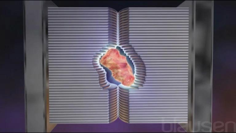 Intensity modulated radiation therapy, or IMRT, is one of the most advanced treatment methods available in external beam radiation therapy. Initially, a CT scan is performed on the affected region in order to establish the exact contours of the tumor and the surrounding healthy tissue and therefore determine the dose of radiation. Based on this data, the radiation beam is modulated to different levels of intensity by a computer-controlled multi-leaf collimator. The “leaves” of this device periodically move in and out contouring the radiation beam to the shape of the tumor. The beams enter the body from different angles in order to maximize tumor dosage. The IMRT technology helps to protect the adjacent healthy tissue, by only exposing it to small doses of radiation, while the tumor receives a larger, potentially more effective dose. This flux of radiation is changing throughout the area with the net affect being that the shape of radiation around the tumor is more precise with IMRT than with conventional radiation.