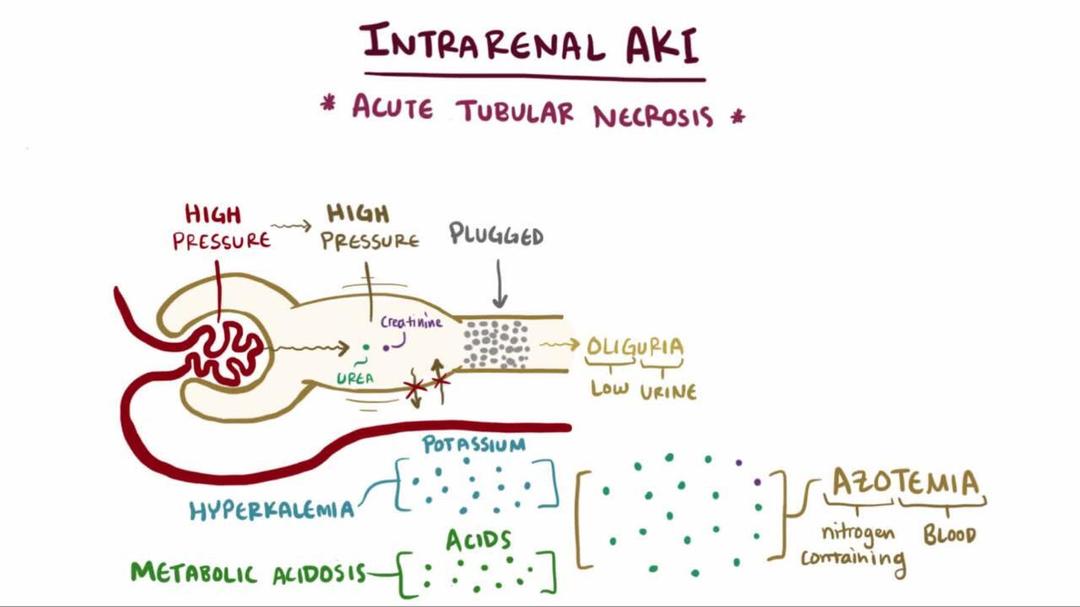 Intrarenal Acute Kidney Injury (Acute Renal Failure) (https://www.youtube.com/watch?v=ISFEgK8sfb8) by Osmosis (https://open.osmosis.org/) is licensed under CC-BY-SA 4.0 (https://creativecommons.org/licenses/by-sa/4.0/).