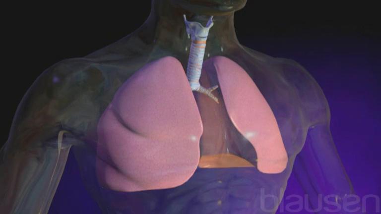 Pendant la respiration normale, l’air passe par le nez, descend dans la trachée puis dans des voies respiratoires de plus en plus étroites appelées bronches. Les bronches se divisent en bronchioles puis finalement en minuscules amas de sacs fragiles et fins semblables à une grappe de raisins, appelés alvéoles.