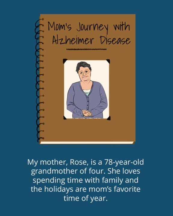 Ma mère, Rose, est âgée de 78 ans et la grand-mère de quatre enfants. Elle aime passer du temps en famille et les vacances sont sa période préférée de l’année. Lorsqu’elle était dans la fleur de l’âge, elle était une merveilleuse conteuse et nous racontait souvent des anecdotes très drôles sur les personnes qu’elle avait rencontrées et les endroits qu’elle avait visités.