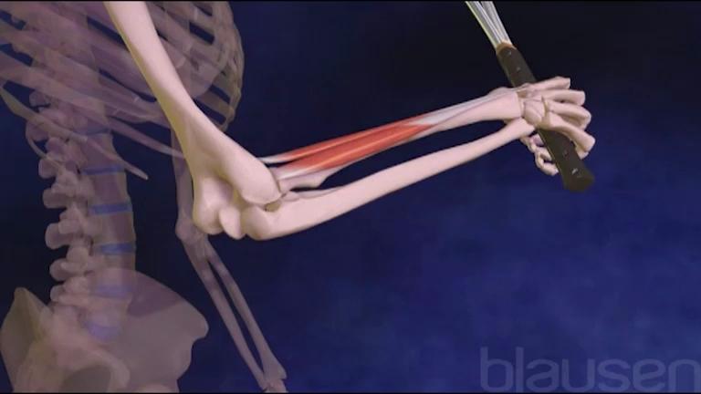 Le système squelettique est le cadre du corps. Il donne au corps sa forme, protège les organes internes et permet le mouvement. Le mouvement est possible grâce à une interaction des os avec les muscles, les ligaments et les tendons. Toutefois, des traumatismes soudains ou un stress physique répété peuvent endommager les tendons qui relient les muscles aux os. Par exemple, un traumatisme courant affecte un tendon qui ancre les extenseurs radiaux du carpe de la partie inférieure du bras au renflement externe, ou épicondyle, du coude. Comme ce muscle est utilisé pour tirer la main vers l’arrière, comme dans un revers au tennis, le traumatisme est souvent appelé « tennis-elbow » (coude du joueur de tennis). Les mouvements répétitifs requis au tennis, ainsi que lorsque l’on peint ou que l’on exécute de nombreuses autres tâches, exercent une tension sur ce tendon et provoquent de petites déchirures. Une inflammation, ou tendinite, peut alors se développer, et elle sera accompagnée d’un endolorissement ou d’une douleur au niveau de la partie externe du haut du bras à proximité du coude. Le traitement de l’épicondylite implique souvent le repos et l’immobilisation du bras. Une attelle peut également être bénéfique, principalement parce qu’elle empêche l’utilisation du coude.