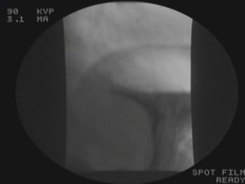 Fluoroscopy (a continuous x-ray technique) is used to view the esophagus after a person swallows liquid barium.